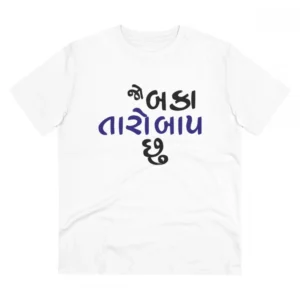 Men’s PC Cotton Baapu Printed T Shirt (Color: White, Thread Count: 180GSM)