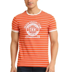 Men’s Casual Cotton Printed Round Neck Half Sleeve T-Shirt (Rust)