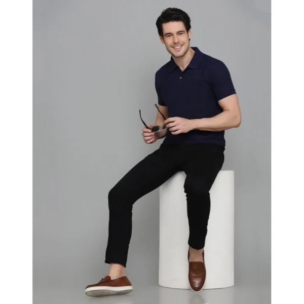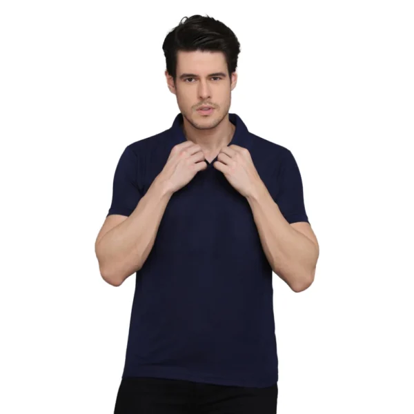 Men's Casual Half Sleeve Solid Cotton Blended Polo Neck T-shirt
