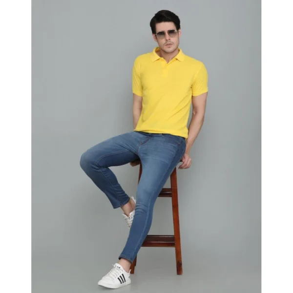 Men's Casual Half Sleeve Solid Cotton Blended Polo Neck T-shirt
