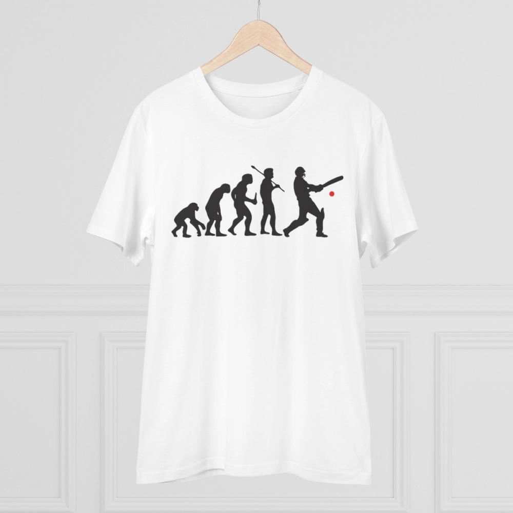 Men's PC Cotton Cricket Design Printed T Shirt (Color: White, Thread Count: 180GSM)