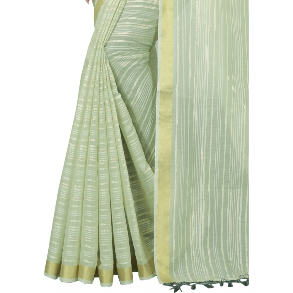 Women's Cotton Blend Solid/Plain Saree With Unstitched Blouse