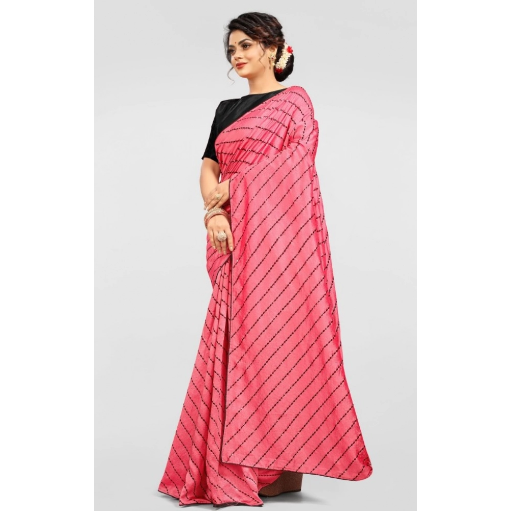Women's Lycra Blend Saree with Blouse (Purple, 5-6 Mtrs)